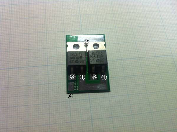 プルダウン抵抗やゲートの入力抵抗は基板に予め実装してあります。